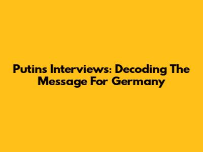 Putin's Interviews: Decoding The Message For Germany