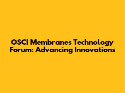OSCI Membranes Technology Forum: Advancing Innovations