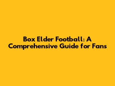 Box Elder Football: A Comprehensive Guide For Fans