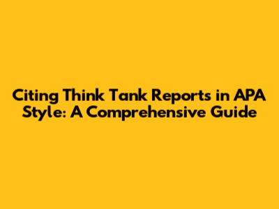 Hey guys! Ever found yourself knee-deep in research, trying to make sense of all the awesome information out there? You're not alone! Think tank reports are fantastic resources, but let's be real, citing them in APA style can sometimes feel like deciphering ancient hieroglyphics. Don't worry, I've got your back. In this comprehensive guide, we'll break down the ins and outs of how to cite think tank reports in APA style, making it super easy and stress-free. Whether you're a student, a researcher, or just someone who loves to stay informed, this is the ultimate resource for mastering APA citations for think tank reports. Let's dive in and make sure your citations are on point! We'll cover everything from the basic format to handling different types of reports and how to avoid common pitfalls. Get ready to become an APA citation pro!