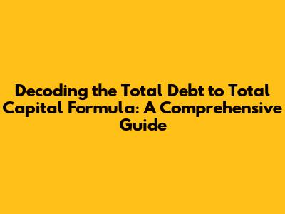 Hey everyone, let's dive into something super important for understanding how companies are financed: the Total Debt to Total Capital Formula. Sounds complex, right? Nah, it's actually pretty straightforward, and knowing it can give you a real edge, whether you're just starting to learn about finance or you're a seasoned investor. This formula is like a financial health checkup for a company, showing us how much of its funding comes from debt compared to the total capital it uses. Knowing how to calculate and interpret this ratio can reveal a lot about a company's financial risk and its strategy.
