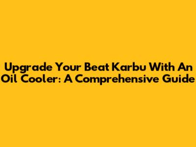 Upgrade Your Beat Karbu With An Oil Cooler: A Comprehensive Guide