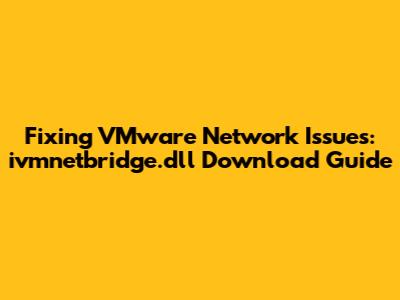 Hey guys! Ever run into network problems while using VMware? It can be a real pain, right? One of the common culprits behind these issues is the ivmnetbridge.dll file. This is a crucial component that helps VMware create virtual network connections, enabling your virtual machines (VMs) to communicate with the host machine and the outside world. If this file is missing, corrupted, or outdated, you're likely to experience network connectivity problems within your VMs. Don't worry, though! In this guide, we'll dive deep into what ivmnetbridge.dll is, why it's important, and how to get it sorted out so you can get back to using your VMware VMs without a hitch. We'll cover everything from understanding the file's role to how to safely download and install it, ensuring that your network woes become a thing of the past. Let's get those VMs talking again! This guide is designed to be super easy to follow, even if you're not a tech whiz. We'll break down each step in simple terms, so you can troubleshoot and fix your VMware network issues like a pro. We will explore the common errors, the possible causes, and the solutions to get the VMware and its associated network back up and running. By the end of this article, you will be able to efficiently troubleshoot the VMware ivmnetbridge.dll error, know how to download the file safely, and successfully restore the network connection to your VMs.
