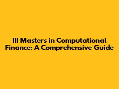 Are you guys interested in the intersection of finance and technology? Then a Master's in Computational Finance might just be your golden ticket! It's a super cool field that blends financial theory with hardcore computational techniques. In this guide, we’re diving deep into what the III Masters in Computational Finance is all about, what you’ll learn, and why it might be the perfect career move for you. So, let's jump right in!