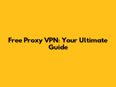 Free Proxy VPN: Your Ultimate Guide