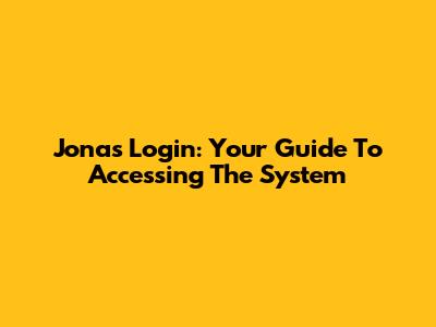 Jonas Login: Your Guide To Accessing The System