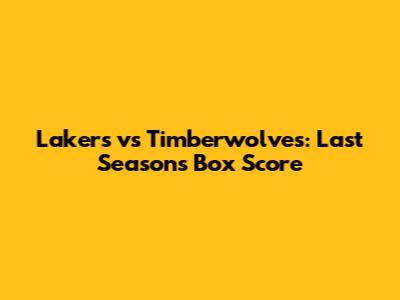 Lakers Vs Timberwolves: Last Season's Box Score