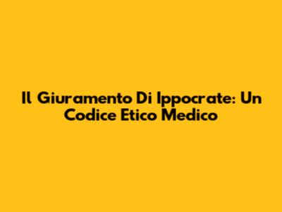 Il Giuramento Di Ippocrate: Un Codice Etico Medico