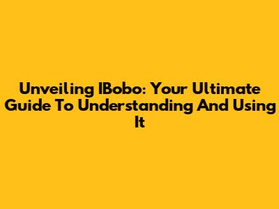 Unveiling IBobo: Your Ultimate Guide To Understanding And Using It