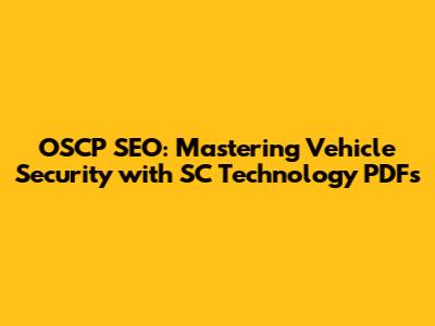 Hey guys! Let's dive into the exciting world where OSCP SEO meets vehicle security and SC technology PDFs. You might be wondering, "What's the big deal?" Well, in today's hyper-connected world, our vehicles are becoming more like computers on wheels. This means they're also vulnerable to cyber threats. Understanding how to optimize online content related to vehicle security, especially concerning penetration testing and security certifications, is crucial. This article will explore how to leverage SEO techniques to make critical vehicle security information more accessible, focusing on resources like SC technology PDFs, and highlight the importance of certifications like the OSCP (Offensive Security Certified Professional) in this domain.