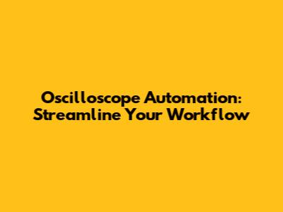 Oscilloscope Automation: Streamline Your Workflow