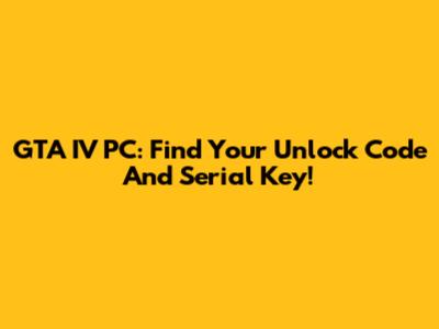 GTA IV PC: Find Your Unlock Code And Serial Key!