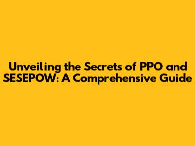 Hey guys! Ever heard of PPO and SESEPOW? Maybe you have, maybe you haven't. But don't sweat it, because we're about to dive deep into these concepts and break them down so you understand everything. This guide will walk you through the nitty-gritty, from what they are to how they work, and even touch on their significance in the grand scheme of things. So, buckle up, grab your favorite beverage, and let's get started on this exciting journey of discovery. We're going to cover everything you need to know about PPO and SESEPOW, helping you become an expert in no time. This is your one-stop shop for understanding these important concepts. Let's get to it!