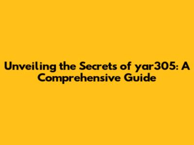 What Exactly is yar305? The Fundamentals
