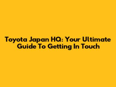 Toyota Japan HQ: Your Ultimate Guide To Getting In Touch